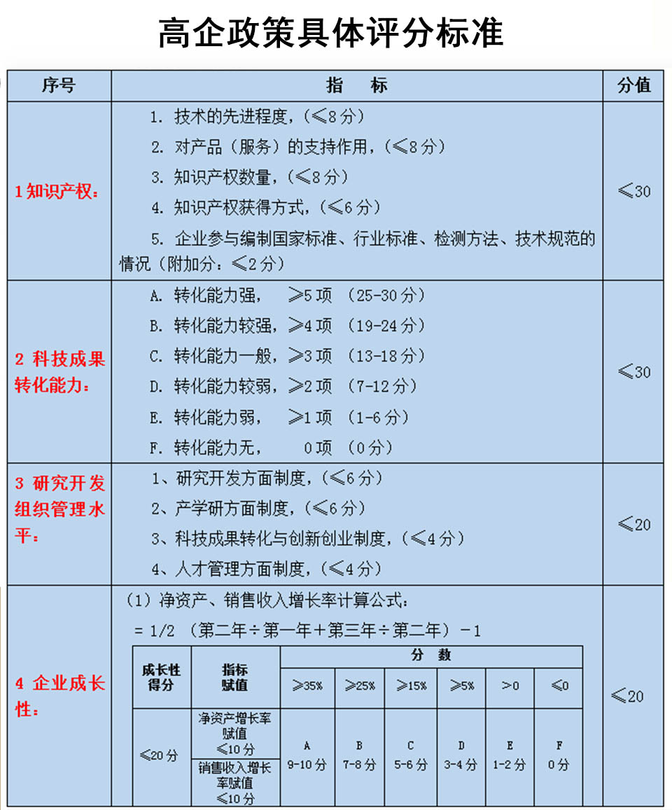 高新技術(shù)企業(yè)認(rèn)定評(píng)分標(biāo)準(zhǔn)